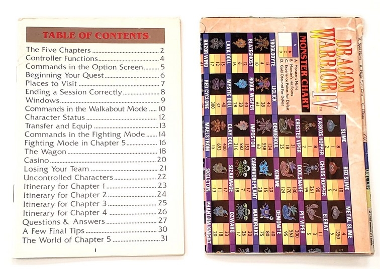 Dragon Warrior IV + Monster Chart (I)